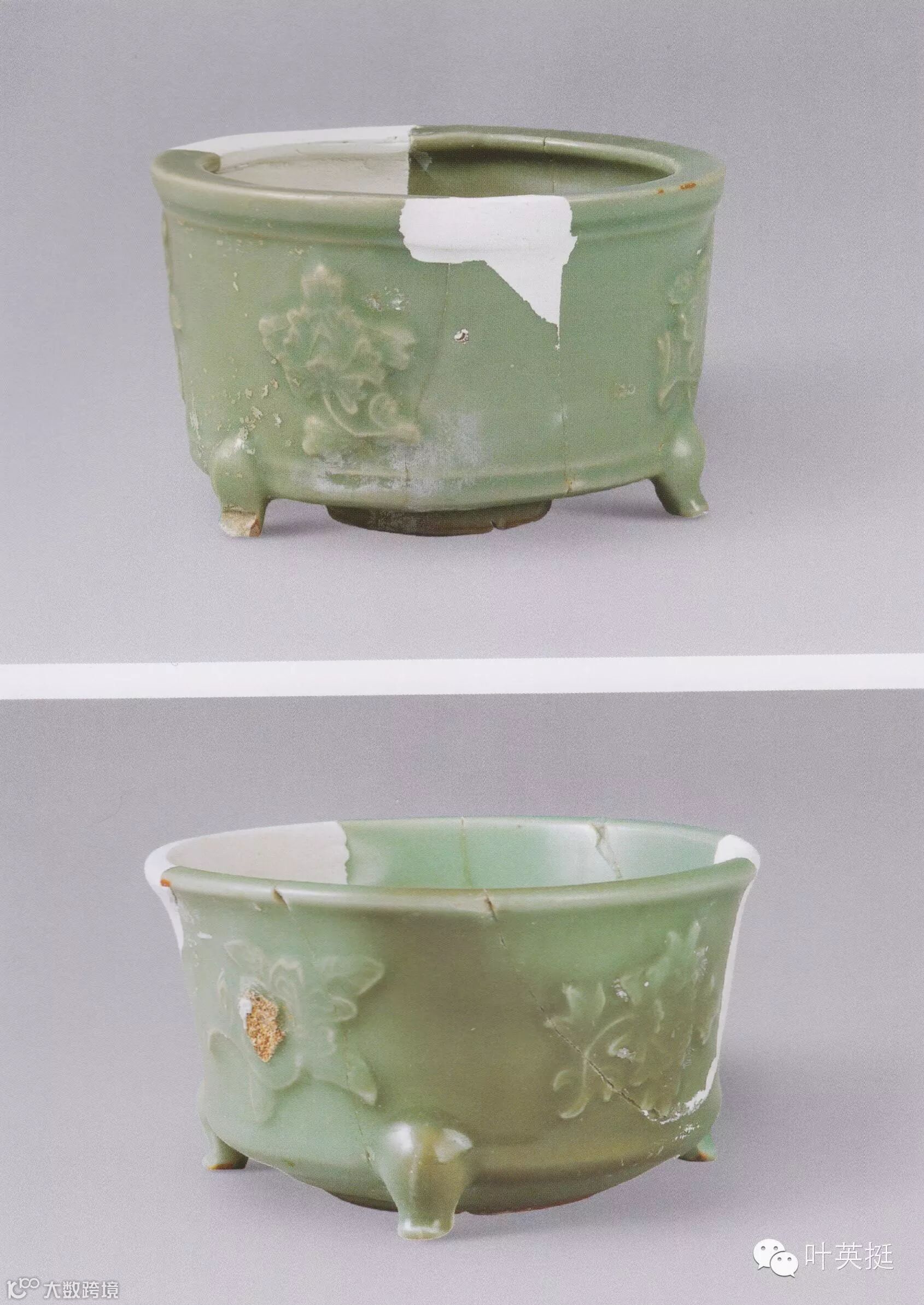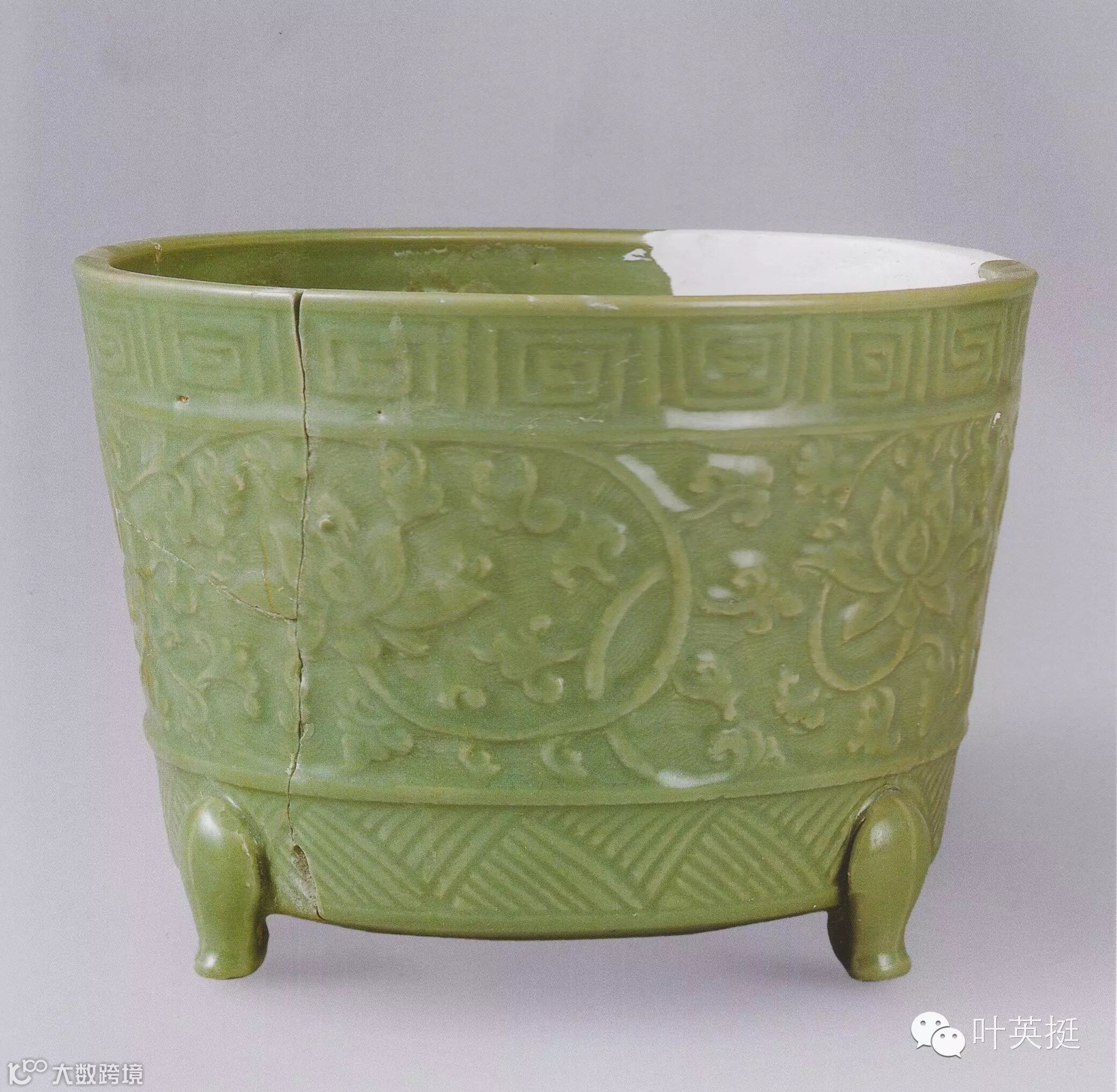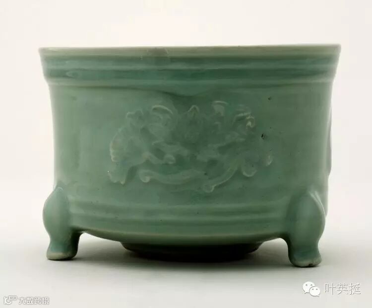 朱伯谦《龙泉窑青瓷》写到“在炉上主要是在樽式炉的腹部等距离的饰宽弦纹三道。”南宋如意足弦纹奁式炉可说是奁式炉中最为经典之式样。元明弦纹奁式炉与南宋相比变化较大。