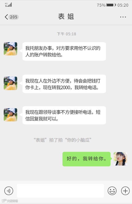 骗子盗取了你的亲友社交账号,冒充成你的亲友,称自己遇到“车祸”等急事急需用钱,让你先转钱应急。还有的以“为他人转账不方便”为由,先把钱打给你并发来虚假转账截图,要求你转账至指定账户。