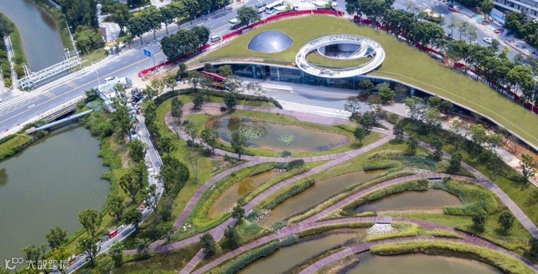 景观湖、亭台楼阁、缓跑道,地面上是漂亮的湿地公园,地下10多米处却大有乾坤, 污水生化处理池、污泥区等有序排列。