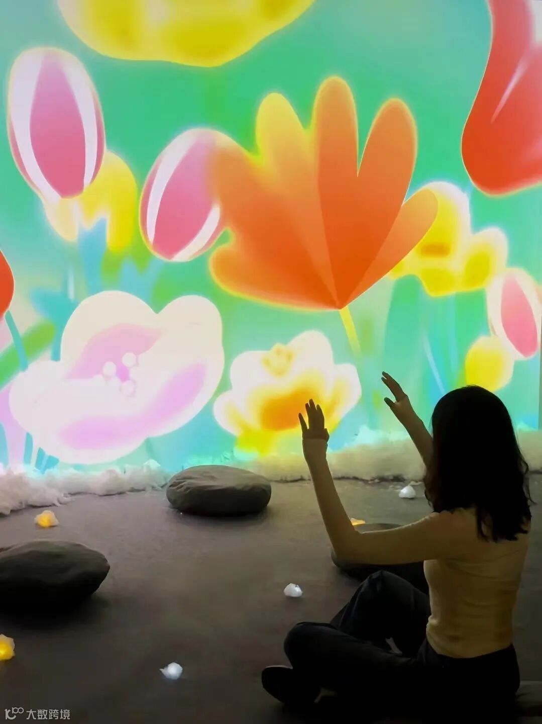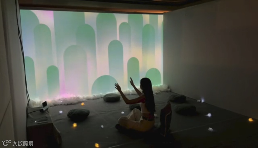 整个交互空间打破了“被动观看”的传统模式——你只需缓慢伸展肢体,便能触发画面的实时变化,让身体的律动成为连接自我与音画的桥梁,在主动参与中感受情绪的流淌与释放。