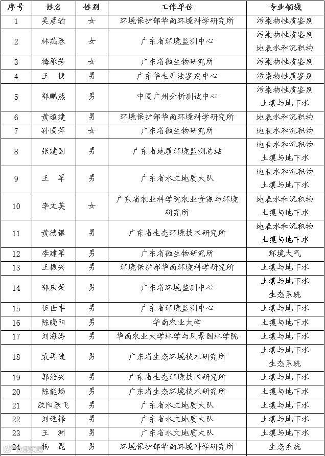 附件:广东省环境损害司法鉴定机构登记评审专家库专家名单