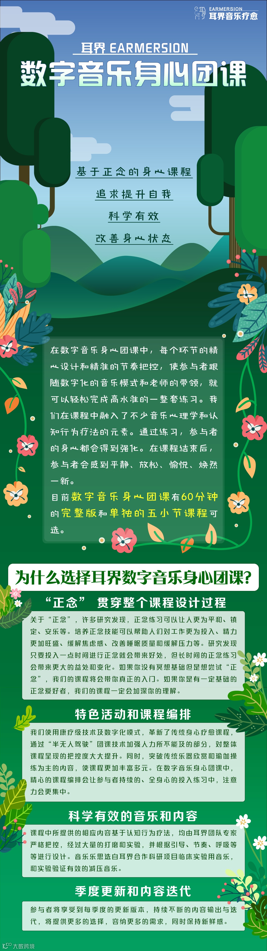 数字音乐身心团课是一项基于正念的身心课程,适合所有对提升自我有追求的人,能科学有效的帮助改善身心状态。