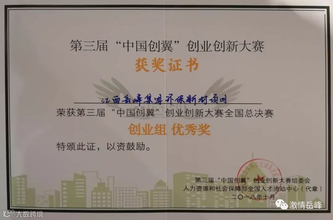 10月15日,第三届"中国创翼"创业创新大赛全国选拔赛及决赛在河南省郑州市落下帷幕。岳峰集团环保新材项目历经两天的激烈角逐,成功晋级进入决赛喜获创业创新全国优秀奖。