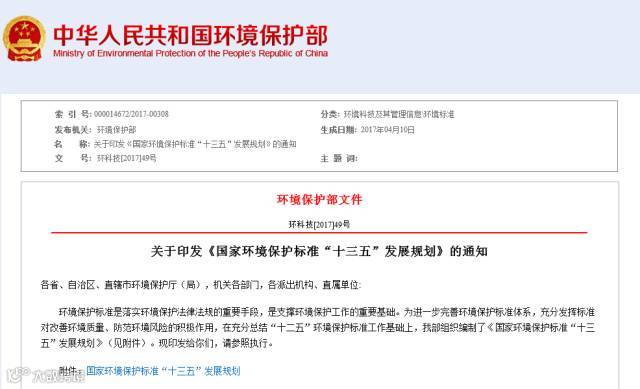 此外,饮食业油烟污染物排放标准、大气污染物综合排放标准、生物有机质堆肥污染控制标准、汽车、 摩托车、 三轮汽车、非道路移动机械噪声控制标准等也被列入《规划》内。