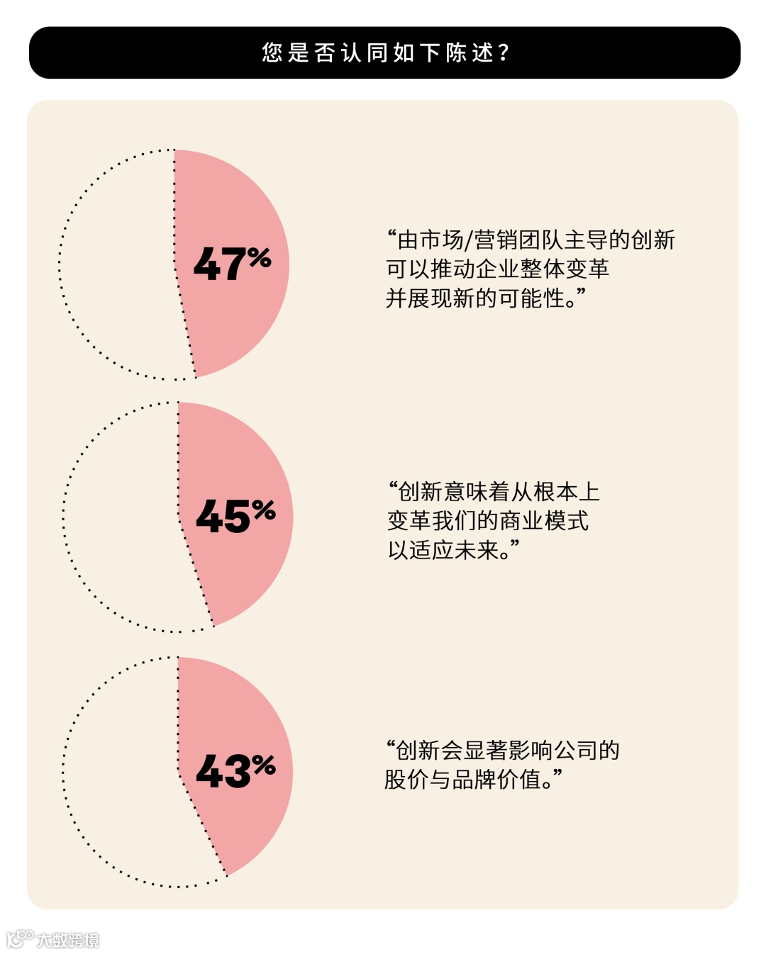 全球有47%的CMO认为,“由市场/营销团队主导的创新可以推动企业整体变革并展现新的可能性”,在印度这一比例升至67%。同时,行业普遍认识到,有价值的创新不必然要由产品或研发团队率先发起。