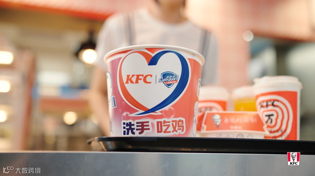 肯德基找到一个最让人安心的伙伴宝洁——全球最大的卫生护理品牌,共同发起“肯用心,宝安心”健康行动,从“洗手,吃鸡”开始,培养卫生意识。
