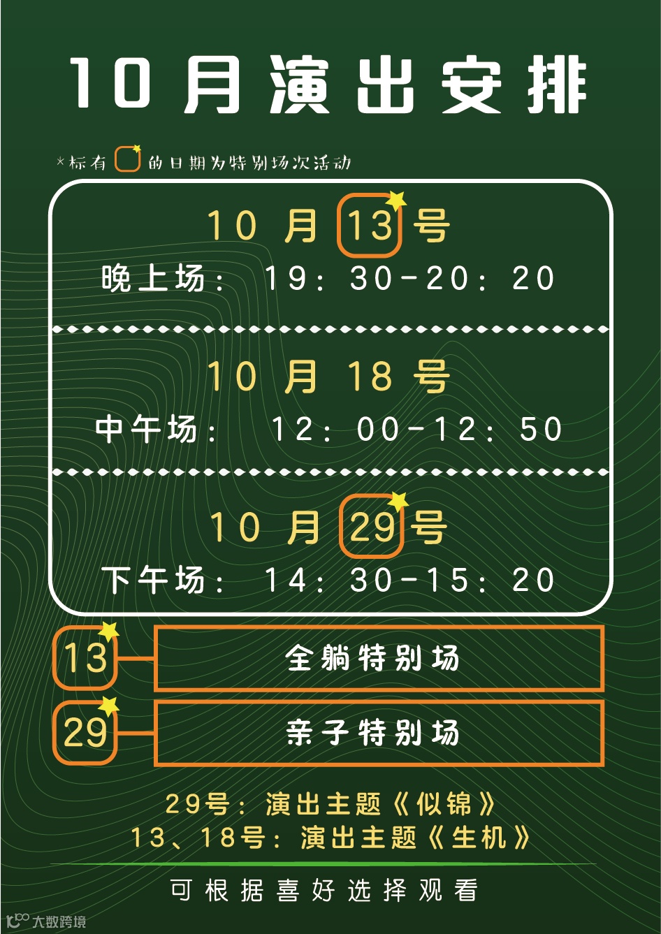 导读:本月有两场特别演出等你参与哦~