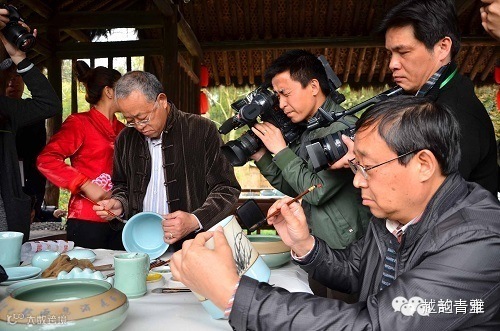 “越韵青雅•闻香摹兰”项目活动,共由名师雅叙、闻香摹兰、书瓷为媒、爱心瓷善四部分活动组成。活动现场,古琴悠悠,兰香扑鼻,海内外书画名家和来自龙泉的国家级青瓷工艺大师夏侯文等,集聚一堂,效仿书圣,面对飘拂婀娜的兰叶,体味羲之摹兰之意境。在宣纸或越窑青瓷胚胎上泼墨挥毫,书画与青瓷结合,在“一兰一书一瓷”间,穿越时空,穿越心灵。