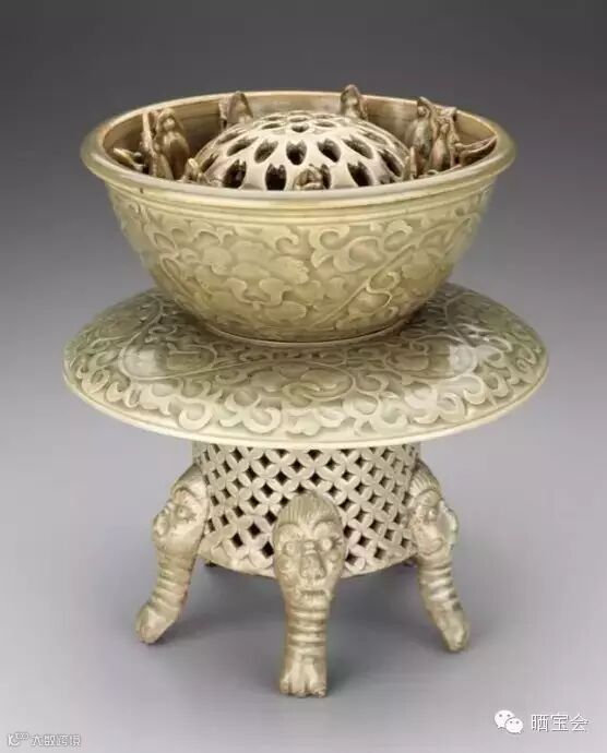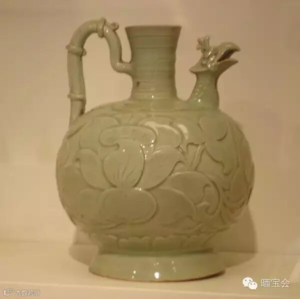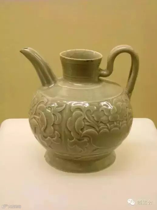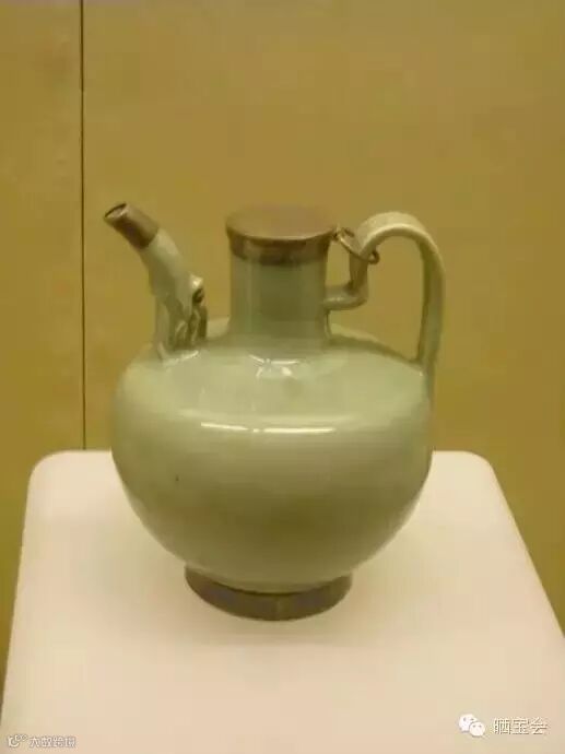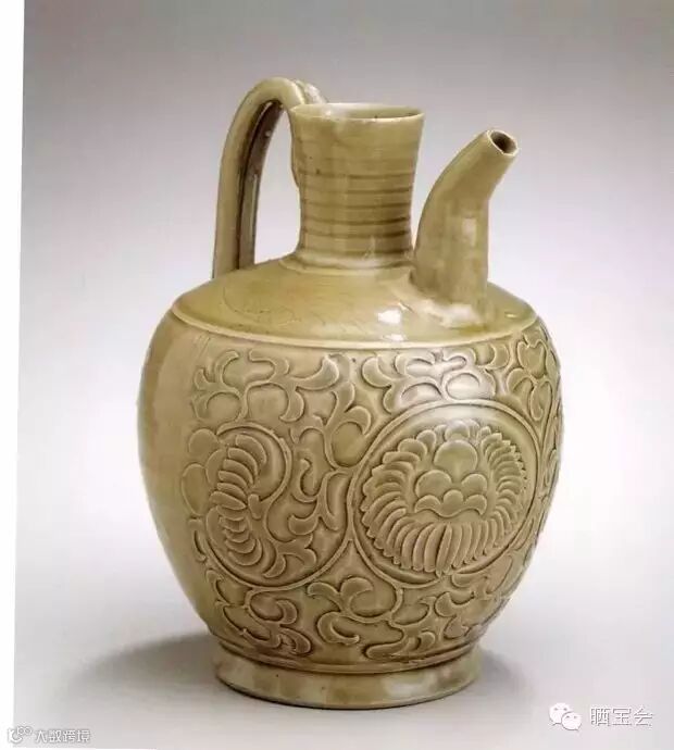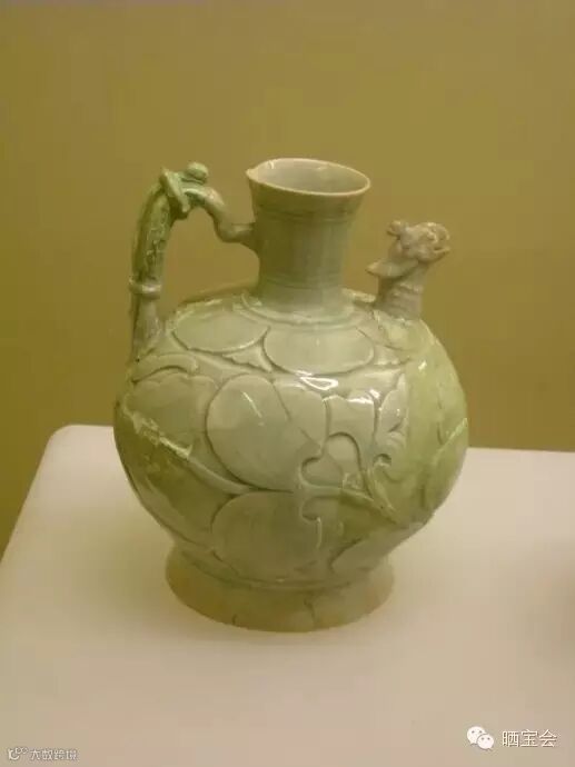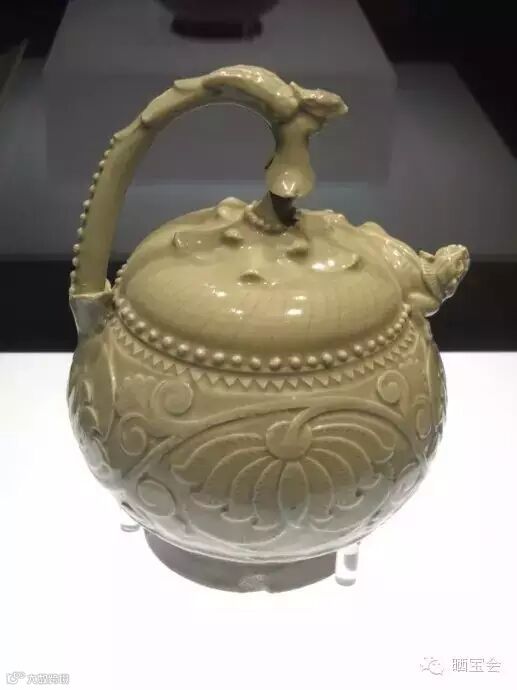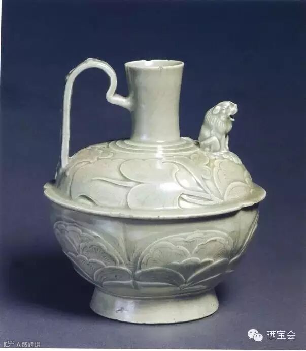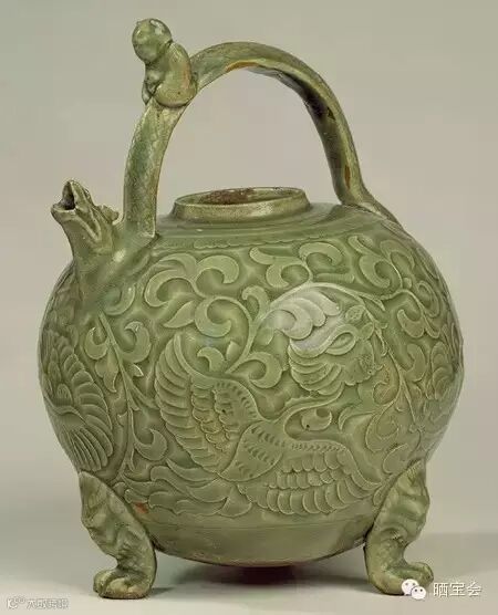 北宋耀州窑青釉刻花提梁兽首三足壶