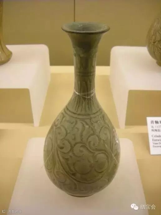 宋代耀州窑青釉刻花牡丹纹玉壶春瓶