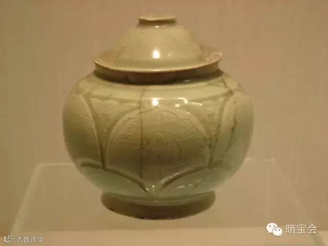 五代耀州窑青釉刻花莲瓣纹盖罐