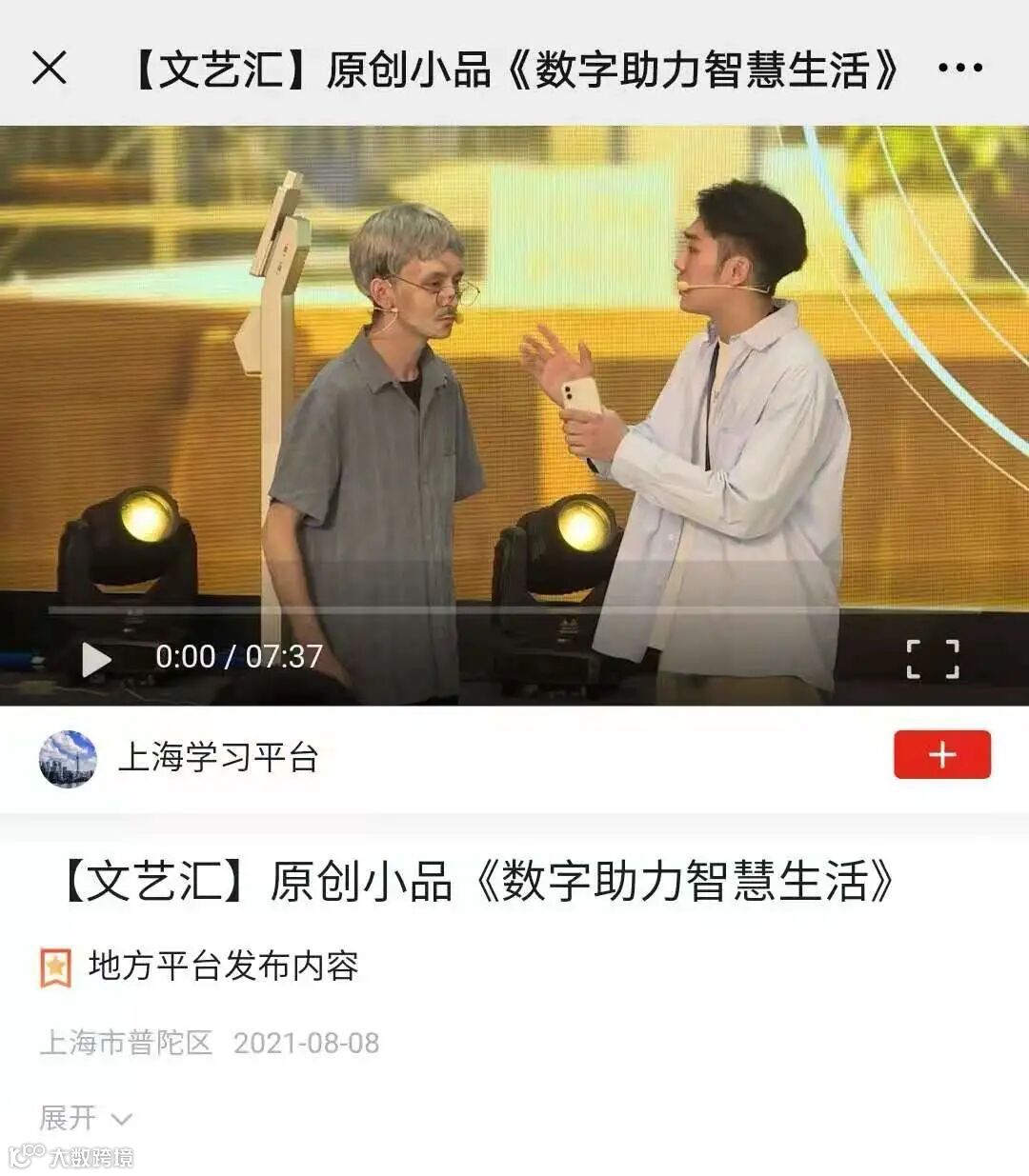 近日,小品《数字助力智慧生活》更是脱颖而出,登上学习强国平台。