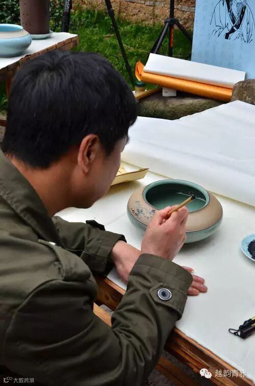 在“越韵青雅•闻香摹兰”前期活动中,书画名家喻革良、方本幼、韩毅成、路健群等除在宣纸上泼墨挥毫之外,还在青瓷坯器留白露胎部分进行了现场即兴创作。经过后期精心烧制,这些融书瓷创作于一体的作品完美呈现,具有较高的收藏价值。