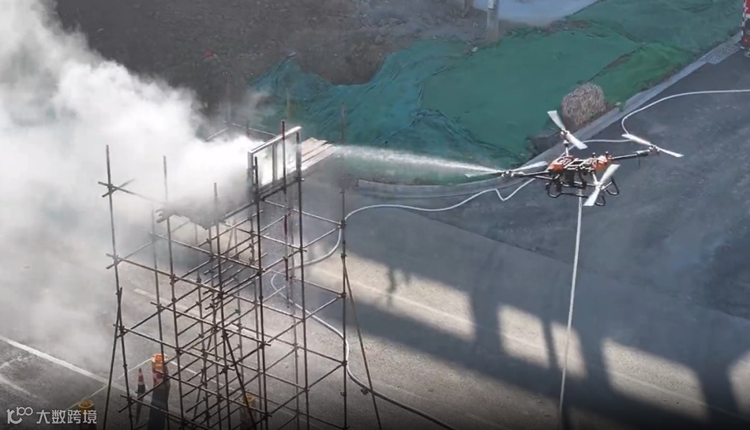在高层火灾模拟环节,雷纳操作人员精准操控无人机破窗开辟通道,搭载水带的系留无人机随即跟进喷水,整套流程高效协同,快速扑灭火源,展现了无人机消防的灵活与精准优势。