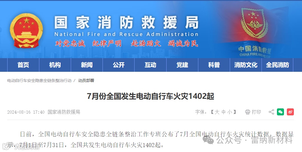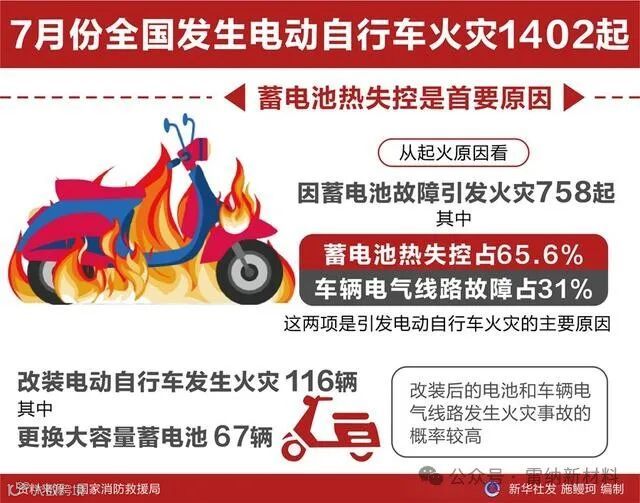 据国家消防救援局最新统计,7月份全国发生电动自行车火灾1402起,蓄电池热失控是首要原因,与此同时,居民安全意识正逐步提升。
