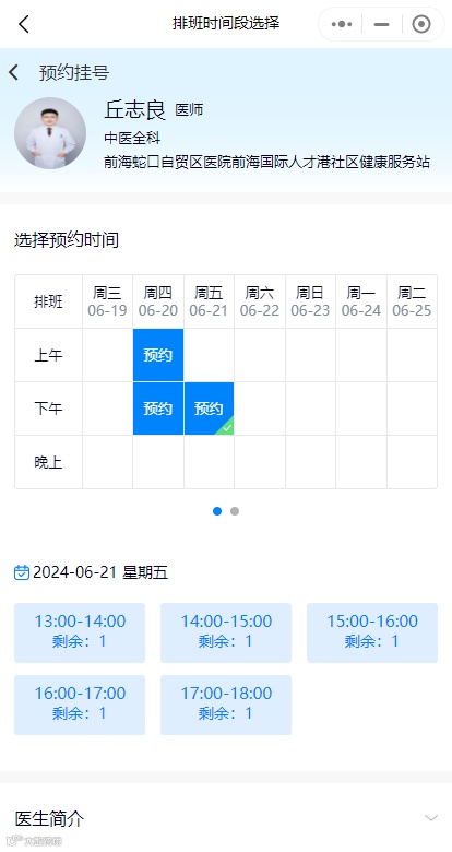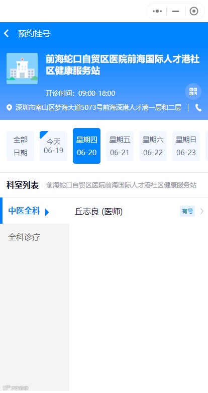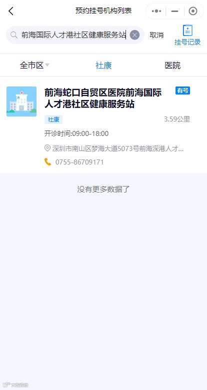 ②搜索“前海蛇口自贸区医院前海国际人才港社区健康服务站”按步骤预约挂号即可。