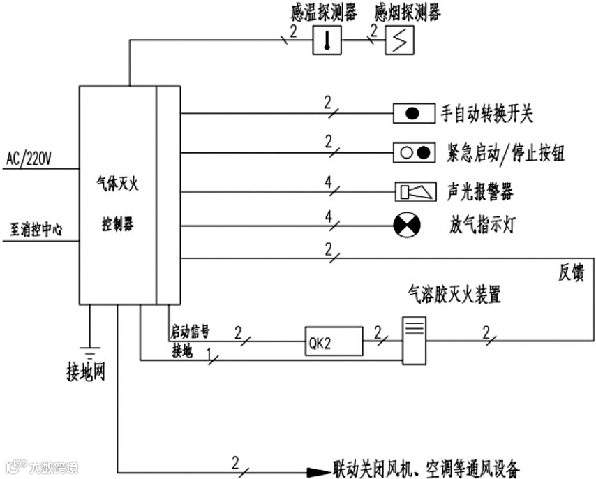 图1 气溶胶灭火系统工作原理图