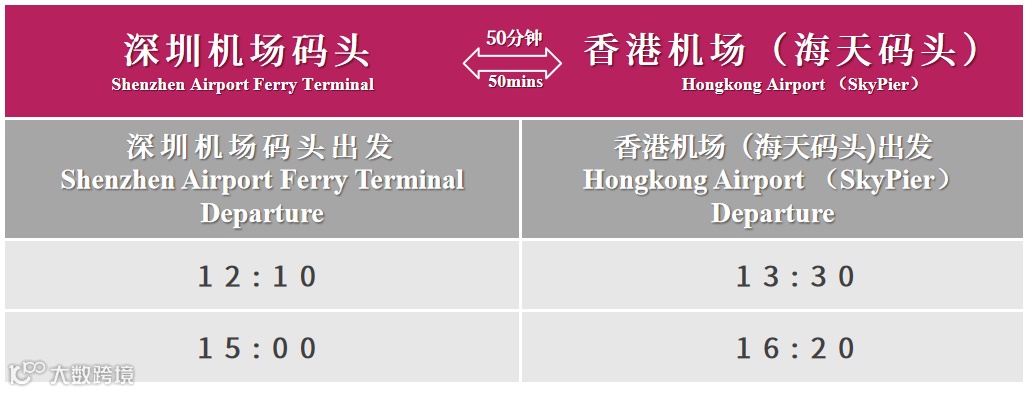 旅客通过该航线前往香港机场仅需约50分钟,无需入境香港,直接进入香港机场控制区,通过安全检查领取过境退税后,搭乘旅客捷运系统(仅需约3分钟)进入香港国际机场1号客运大楼登机离港,空海联运旅程快捷便利~