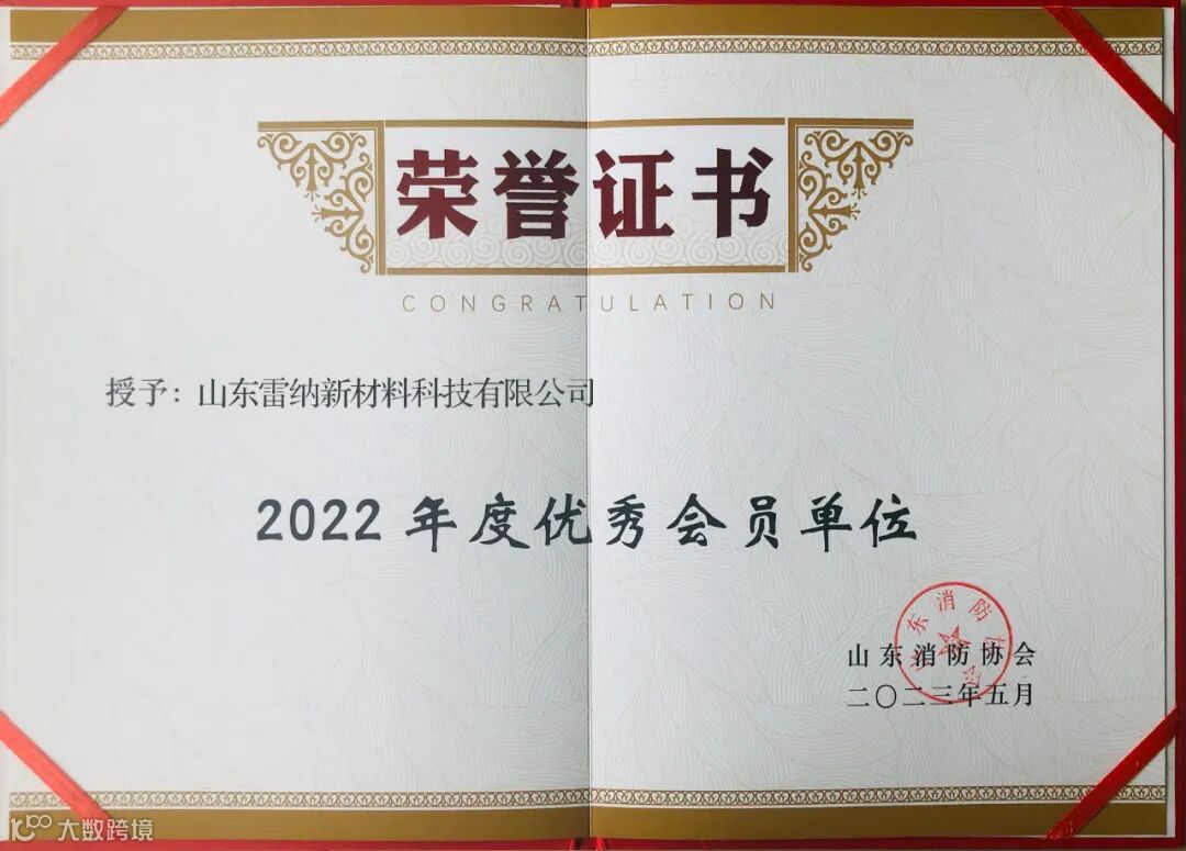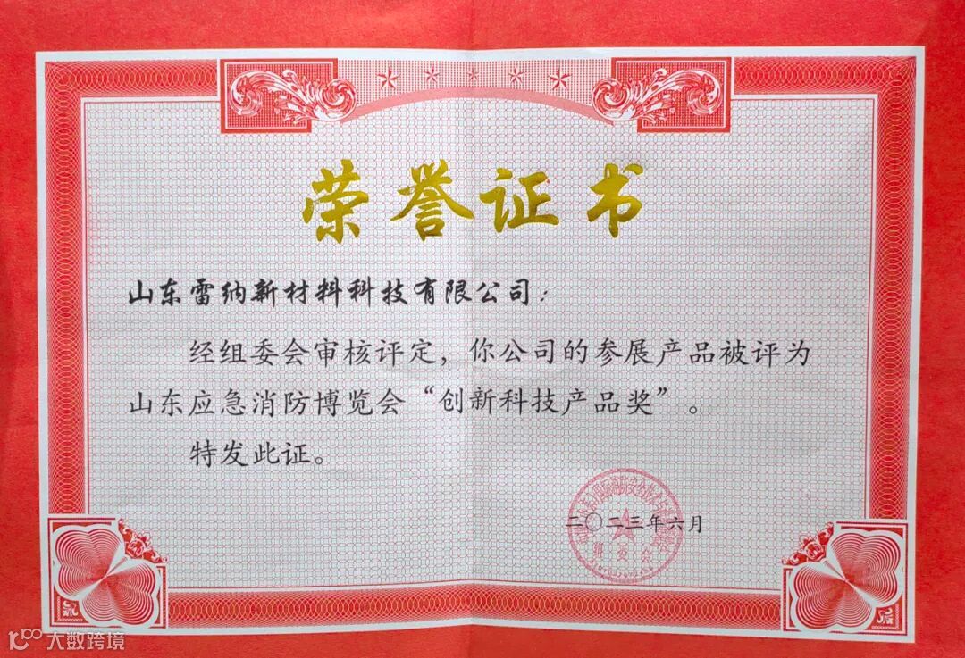 近日,山东雷纳新材料科技有限公司喜讯不断。先是获得山东消防协会2022年度优秀会员单位的荣誉称号,又在中国(山东)应急救援与消防安全设备博览会年度评选中获得创新科技产品奖,可谓喜事连连。