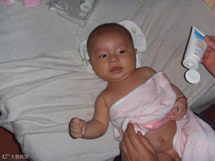 使用婴儿沐浴露之类纯净温和的产品为宝宝沐浴,彻底清洁宝宝肌肤的同时,给宝宝肌肤留下天然保护膜,同时有效抵御细菌。浴后可以使用宝宝专用,含有天然滋润成分的护肤产品,如乳液(润肤露)、润肤霜和润肤油等。全身涂抹,这样可以形成一个保护膜,有效地保护宝宝的肌肤。如果宝宝有吐奶要及时清理给宝宝擦洗小脸蛋,每次清洗后都要涂抹润肤露。