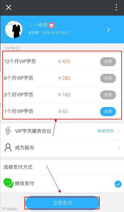 选择好开通的套餐,点击支付就可以成为我们的VIP学员了。