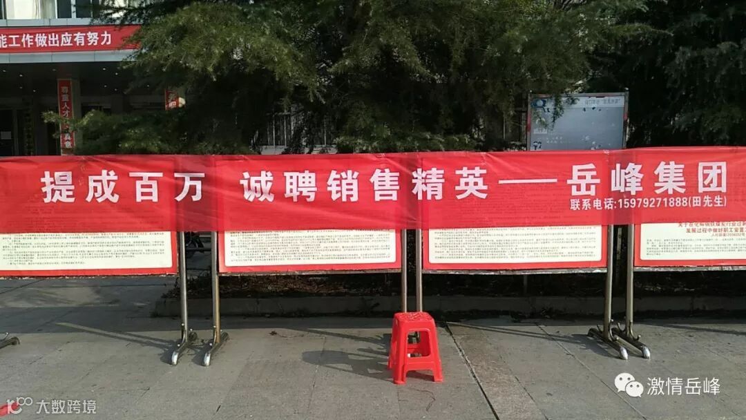 3月1日,岳峰公司在萍乡市青山煤矿工人俱乐部人才信息交流现场重磅亮出横幅:“提成百万,诚聘销售精英——岳峰集团”,此招一石击水迎来广泛关注,一时报名、填表、面试者拥挤不堪,络绎不绝。