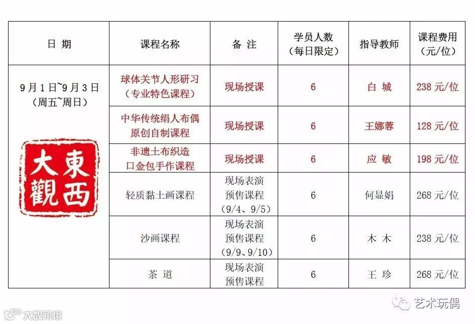 上海设计周展览现场授课的课程为红字标注内容,参加现场课程学习的学员均可免费领取本届上海设计周门票(价值50元/张),预报名申请请发送课程报名信息至指定邮箱:artdollexpo@hotmail.com