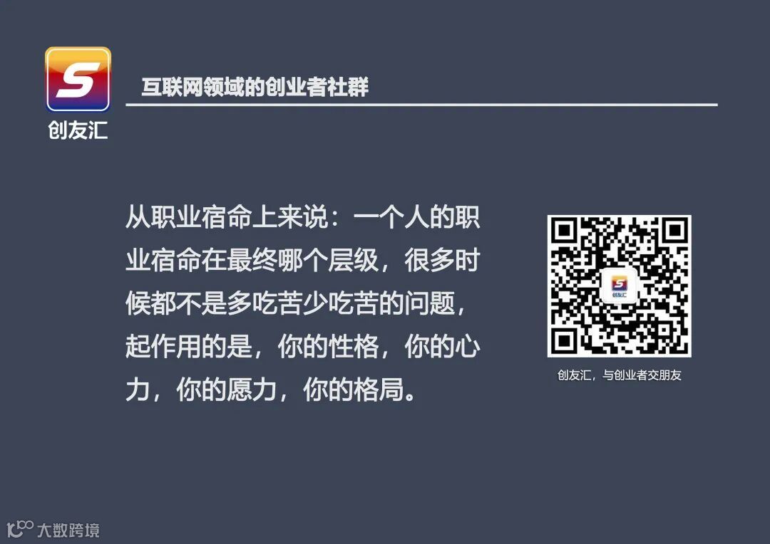 其次,从职业宿命上来说:一个人的职业宿命在最终哪个层级,很多时候都不是多吃苦少吃苦的问题,起作用的是,你的性格,你的心力,你的愿力,你的格局。