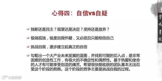 当然,还有一个原则是,我们不开一天的战略会,因为大家会因为一天时间比较匆忙,自以为达成共识,但第二天早上都推翻了,然后重新来过,所以重要的问题是需要反复磨的。