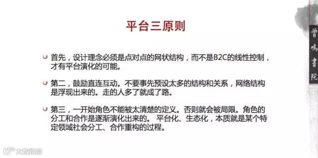 我今天更多是面向以平台、生态等作为未来模式的企业的讨论,这样的企业会越来越普遍性,而很多企业也希望跟这样的企业更多互动和合作,才能找到自己的生存空间。