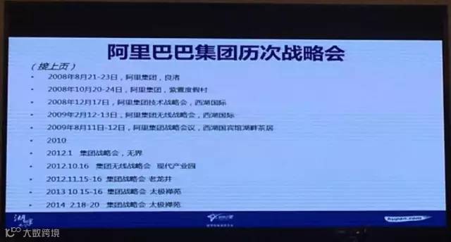 我想把阿里巴巴的发展历史跟大家做一个简短的介绍。这是我在阿里巴巴参加所有战略会的列表。
