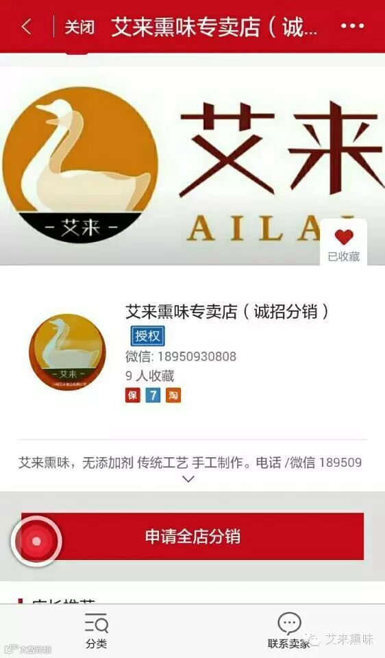4.点击“申请全店分销”整个店铺产品或者点击“我要代理”分销某个产品