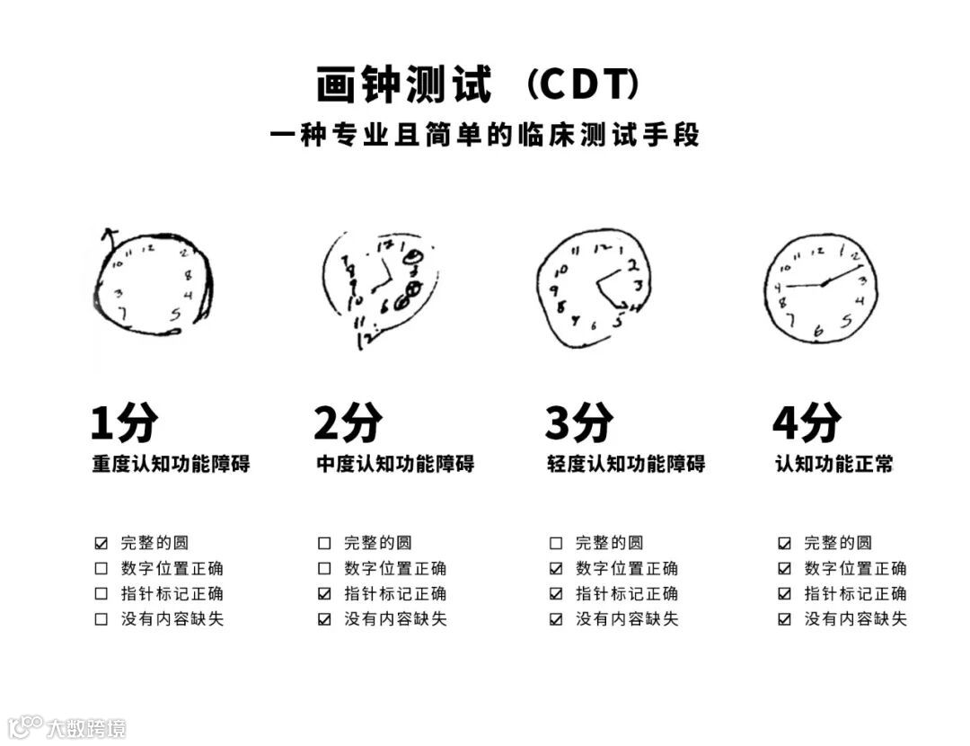 汤彬分享,在画钟测试中,有的老人画着画着就停住了,甚至无法理解画钟这一指令,不知从何下笔,注意力也已飘到别处。