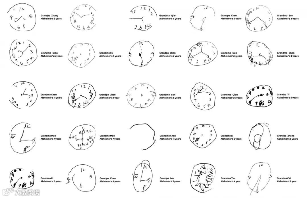 主创团队们在项目前期与剪爱公益合作,并数次去往公益机构帮扶的上海4家养老机构,找到数百位认知症老人进行画钟测试,收集到他们在症状早期、中期、晚期不同阶段画出来的大量时钟图画。