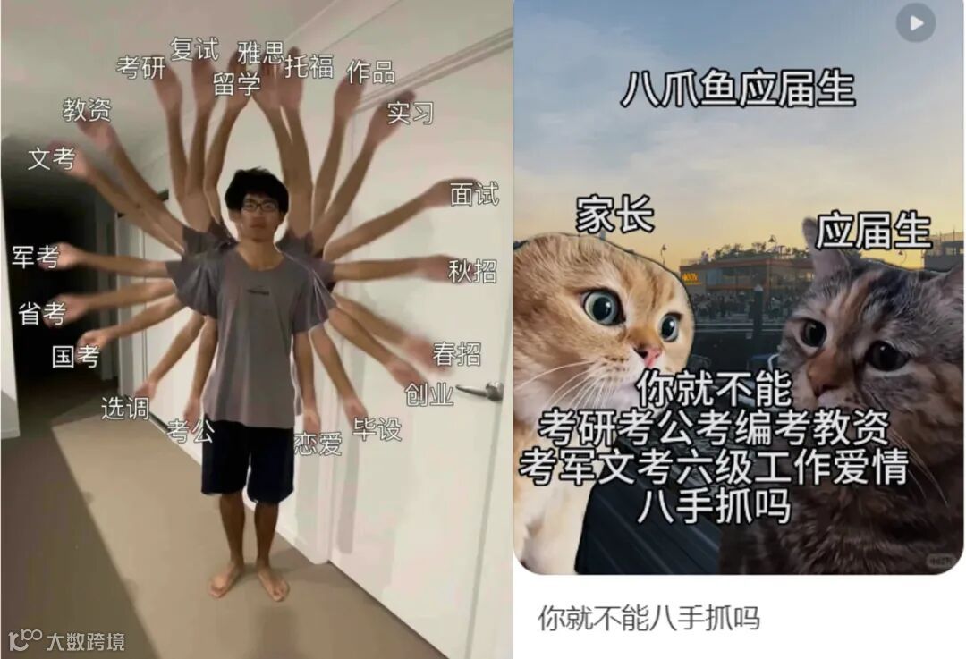 竞争压力下,为了能够顺利毕业走上社会,毕业生们甚至要在大四将“考公、考研、考编、教资、留学、实习、面试、法考、论文、创业”十手抓。
