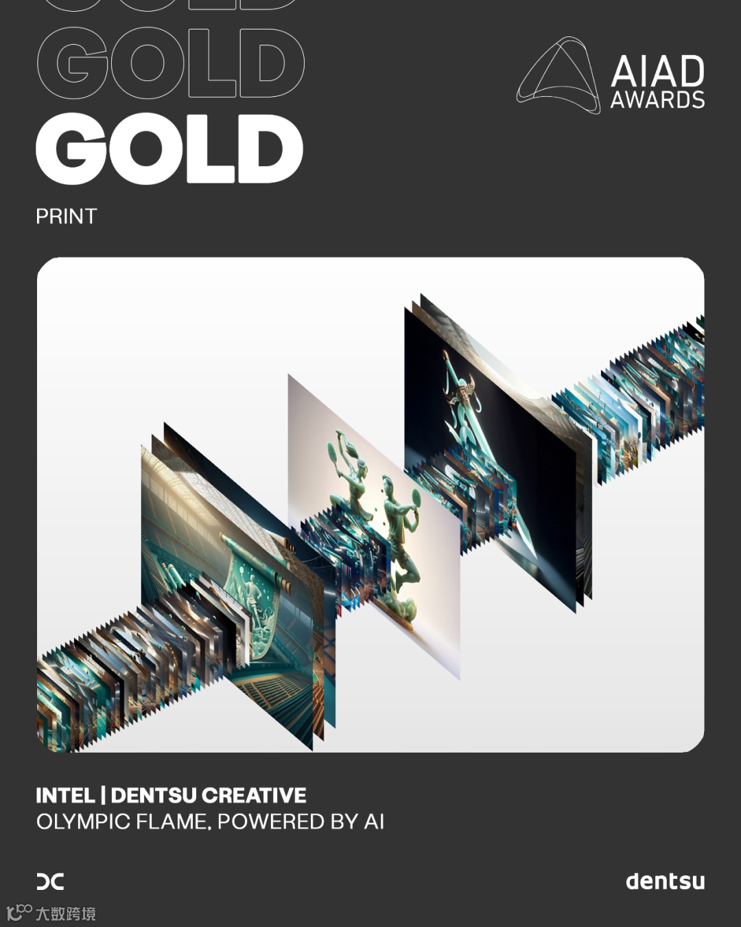 电通创意(DENTSU CREATIVE)与英特尔(Intel)携手打造的《AI在奥运》获得2025AI广告品牌创新设计大赛平面类金奖,同时入围最受欢迎作品。
