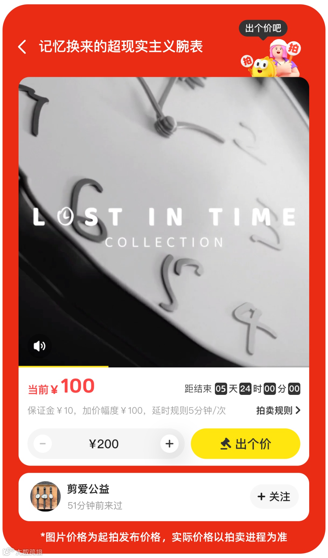 从3月31日中午12点开始,至4月5日中午12点,这些限量腕表正通过剪爱公益机构账号进行拍卖。可前往闲鱼搜索“迷钟寻爱”参与拍卖。