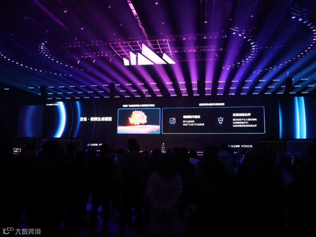 这支视频不止在发布会现场的AI影像区展示,也登上了论坛的演讲大屏,由火山引擎智能算法负责人吴迪,向现场所有人演示,一起见证创意与科技的未来可能性。