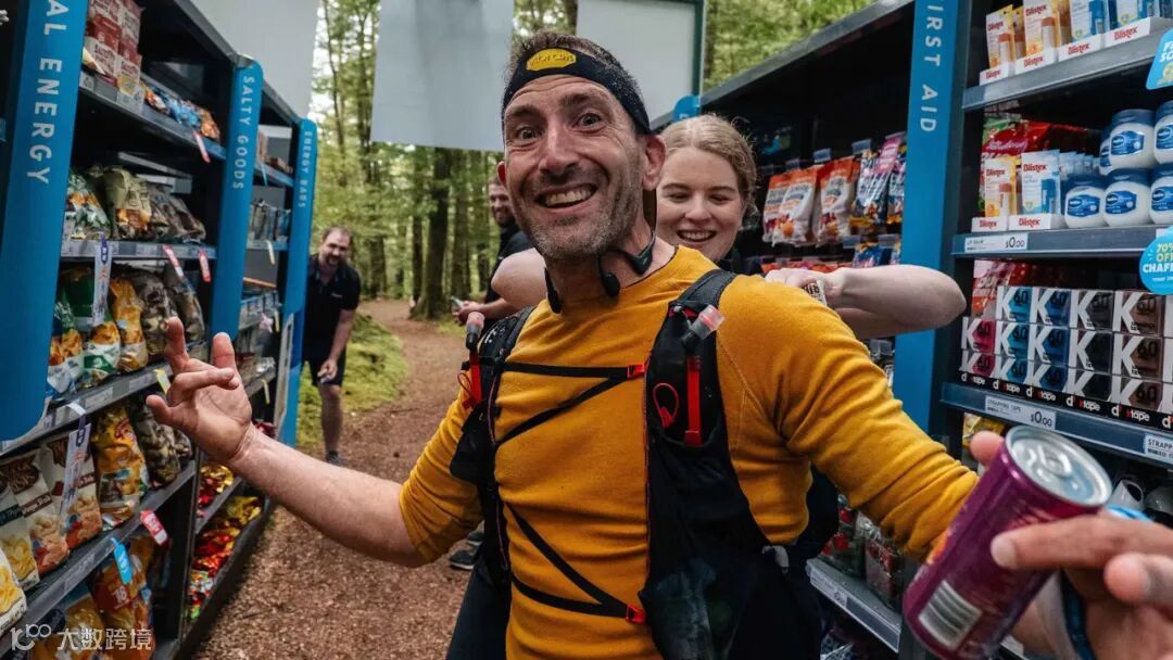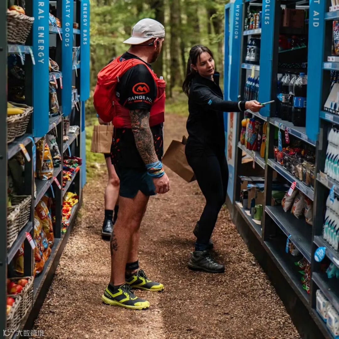 我们在世界上最偏远、最艰苦的超级马拉松赛事之一的 50 公里处,设置了一个超市货架,上面放满了参与者所需的一切物品。