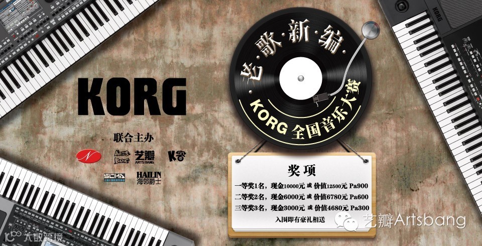 优秀作品奖10名:现金500元 或 价值1000元KORG代金券 + 获奖证书