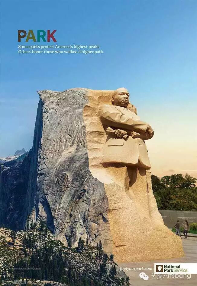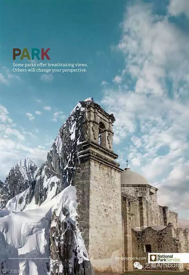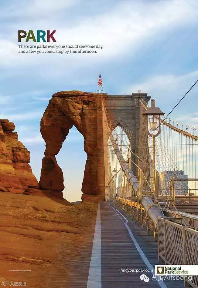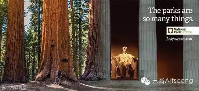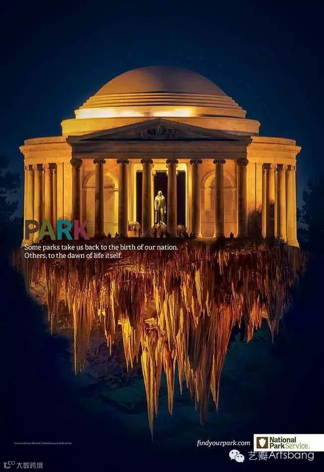 Grey 纽约近日为美国国家公园推出了一组平面广告,创意是用 Photoshop将美国的一些自然景观和纪念建筑拼接在一起。通过相同元素的结合和 PS 技术,最终画面居然还挺搭。