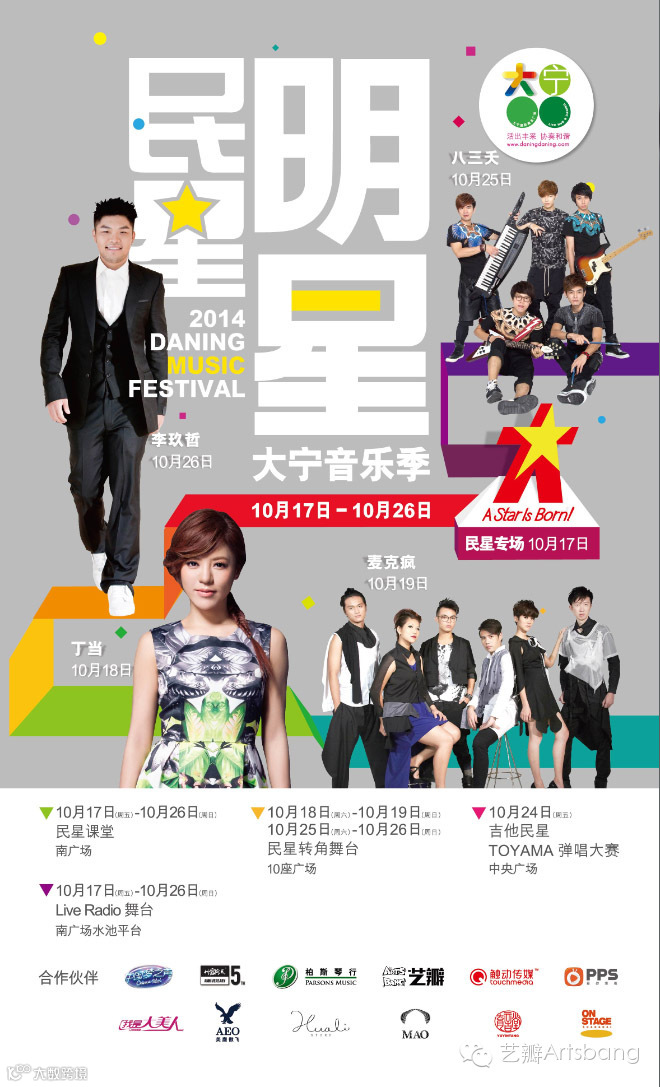 关注艺瓣的小伙伴们,大家期待已久的“艺瓣Artsbang”与“大宁国际”合作举办的2014大宁音乐季“民”星专场暨大宁大“民”星冠军之夜在大宁国际商业广场举行,大宁音乐季专场音乐秀正式拉开帷幕!