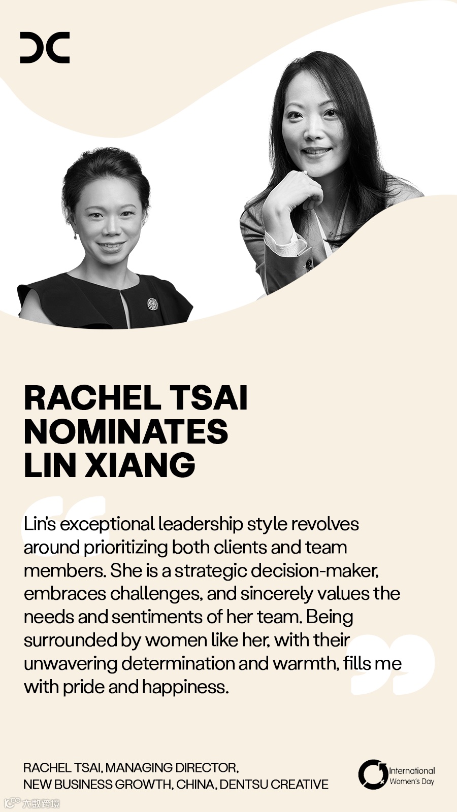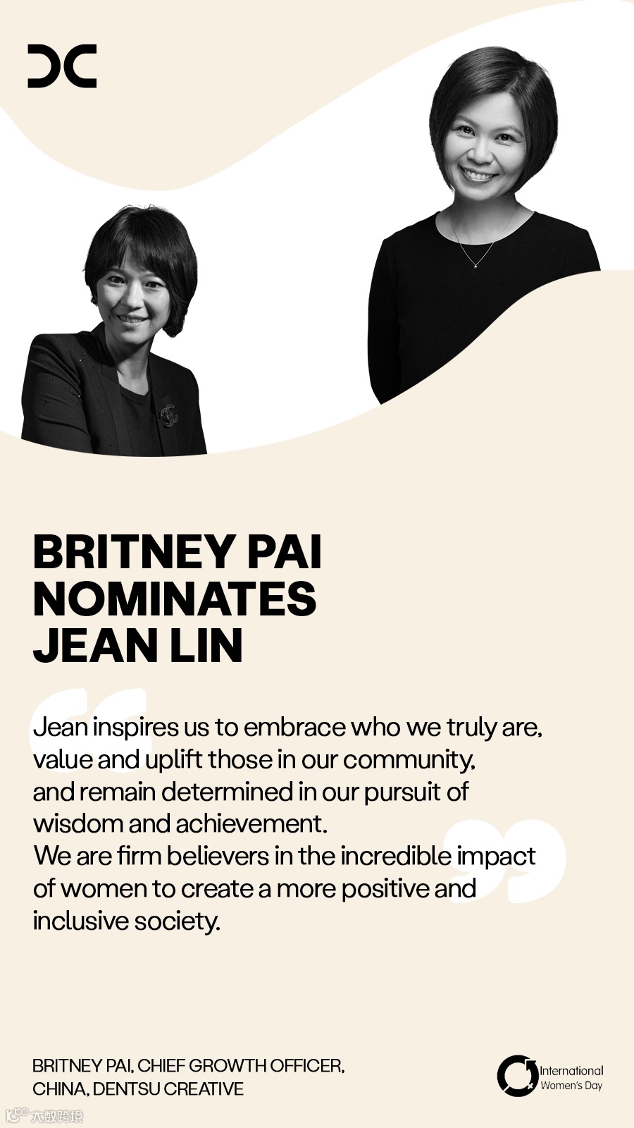 Achieving gender balance is core to our commitment to equality. International Women's Day is a reminder of the progress we have made. For dentsu, our ambition is to have 50% women-identifying in Director and Executive levels. At dentsu China, our female workforce have grown by 5% in the last five years, with many of them taking on crucial roles in driving our company's success through impactful change.