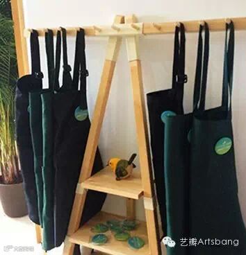 进门的玄关,孩子可以自主换上工作服,穿上了“装备”的孩子俨然小艺术家的模样,尽情投入艺术学习和创作。