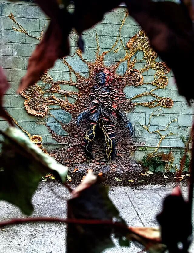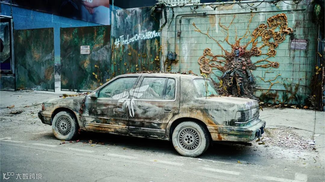 逼真的道具霉菌从广告牌中蔓延开来,并吞噬了周围的一切。它们侵蚀了一辆汽车,还有街道的公共设施。