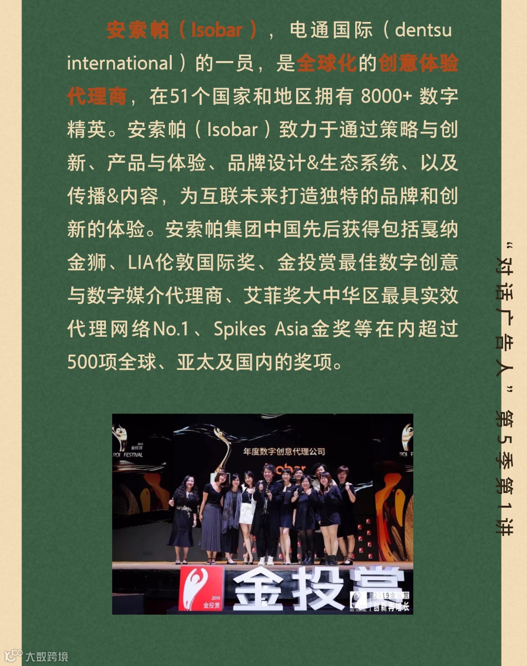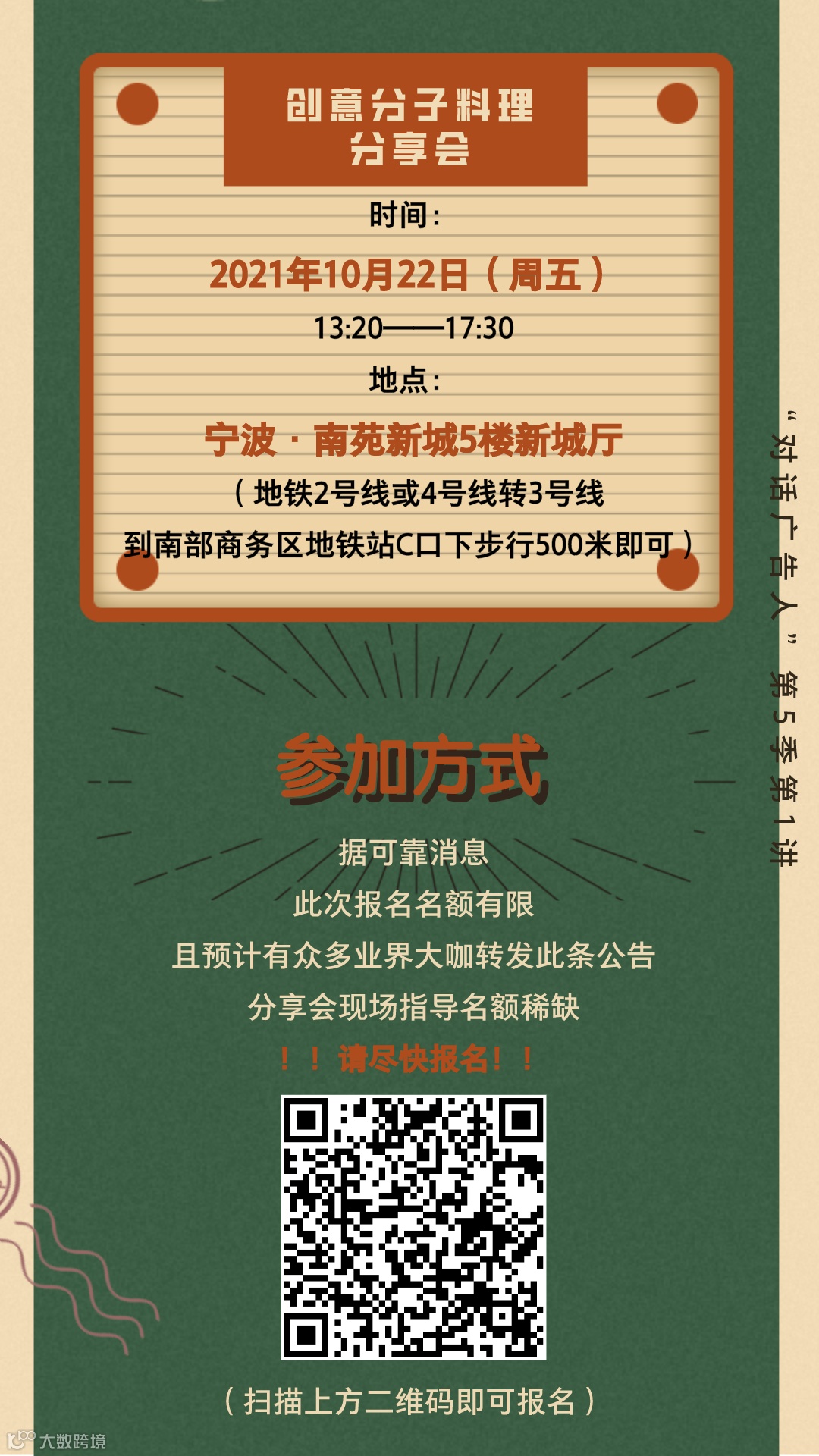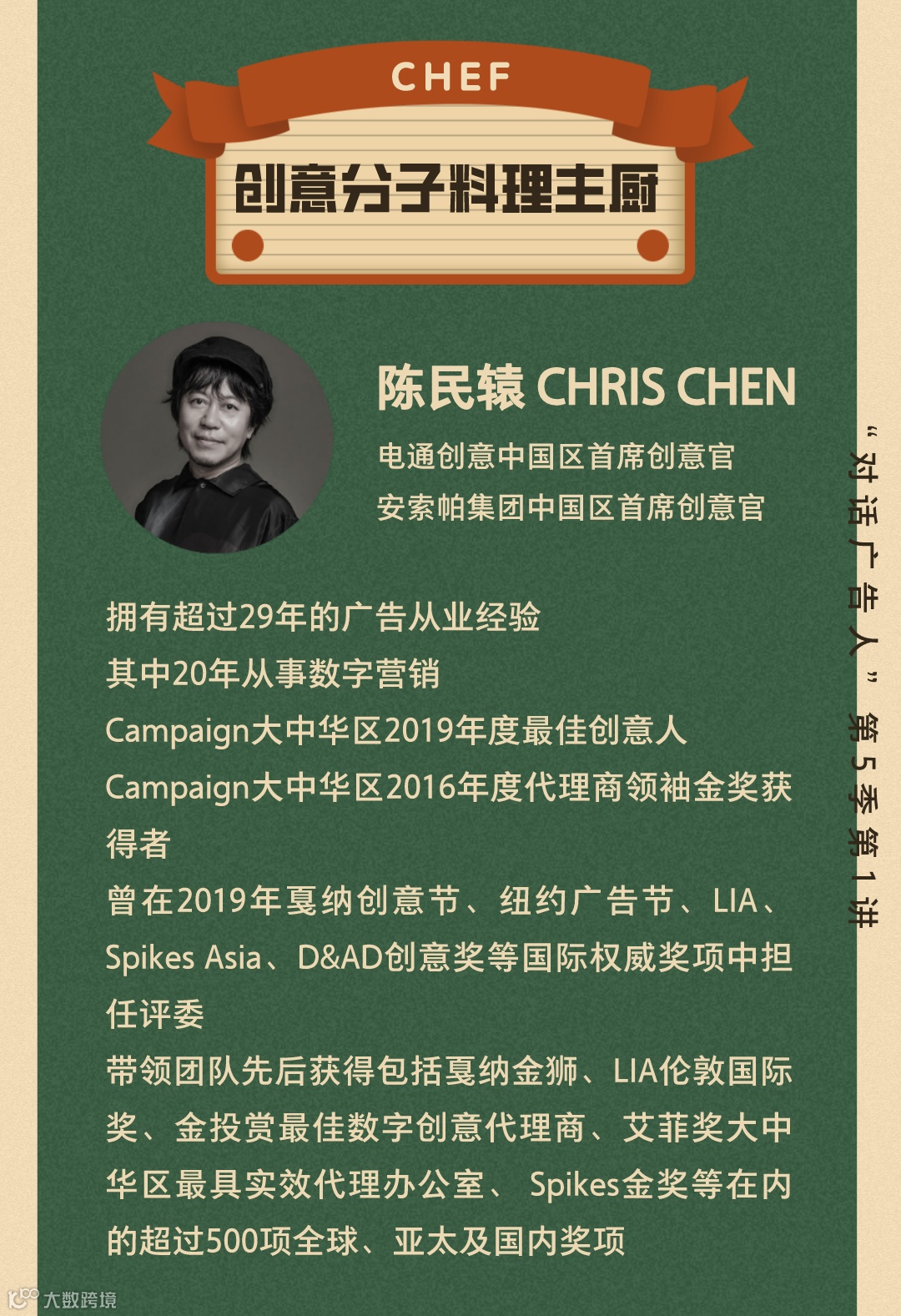 对话广告人由宁波大学人文与传媒学院和宁波国家广告产业园联合发起,是宁波市广告创意营销学界业界与国内外业界大咖的对话平台,每年举办一季。本活动以大广告大传播大营销大创意大设计的立场,把握业界脉搏,敬邀业界前沿大咖,共襄宁波本土创意风暴盛举,致敬这个品牌为先、创意不止的大时代,以创意、艺术与技术的汇聚,助推宁波城市的文创能级!安索帕电通国际的一员,是全球化的创意体验代理商,在51个国家和地区拥有数字精英。安索帕致力于通过策略与创新、产品与体验、品牌设计生态系统、以及传播&内容,为互联未来打造独特的品牌和创新的体验。安索帕集团中国先后获得包括戛纳金狮、LIA伦敦国际奖、金投赏最佳数字创意与数字媒介代理商、艾菲奖大中华区最具实效代理网络金奖等在内超过500项全球、亚太及国内的奖项。曾在2019年戛纳创意节、纽约广告节Spikes Asia、D&AD创意奖等国际权威奖项中担任评委带领团队先后获得包括戛纳金狮、LIA伦敦国际奖、金投赏最佳数字创意代理商、艾菲奖大中华区最具实效代理办公室金奖等在内的超过150项全球、亚太及国内