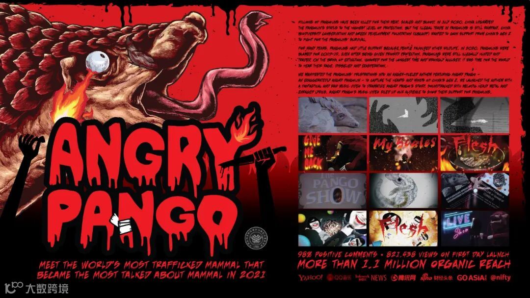 The fantastical and raw music video features an exaggeratedly pangolin called Angry Pango - an exaggeratedly angry pangolin – that dramatised the story about pangolins and their near-extinction. Soundtracked with melodic death metal and enraged lyrics, the music video was released in April and has been distributed on YouTube, Weibo, Haokan and other platforms, generated 821,438 views on first day of launch.