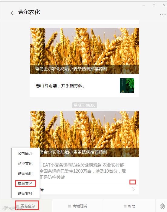 方式二:点击金尔农化公众号—“青岛金尔”—“福润专区”,点击即可。