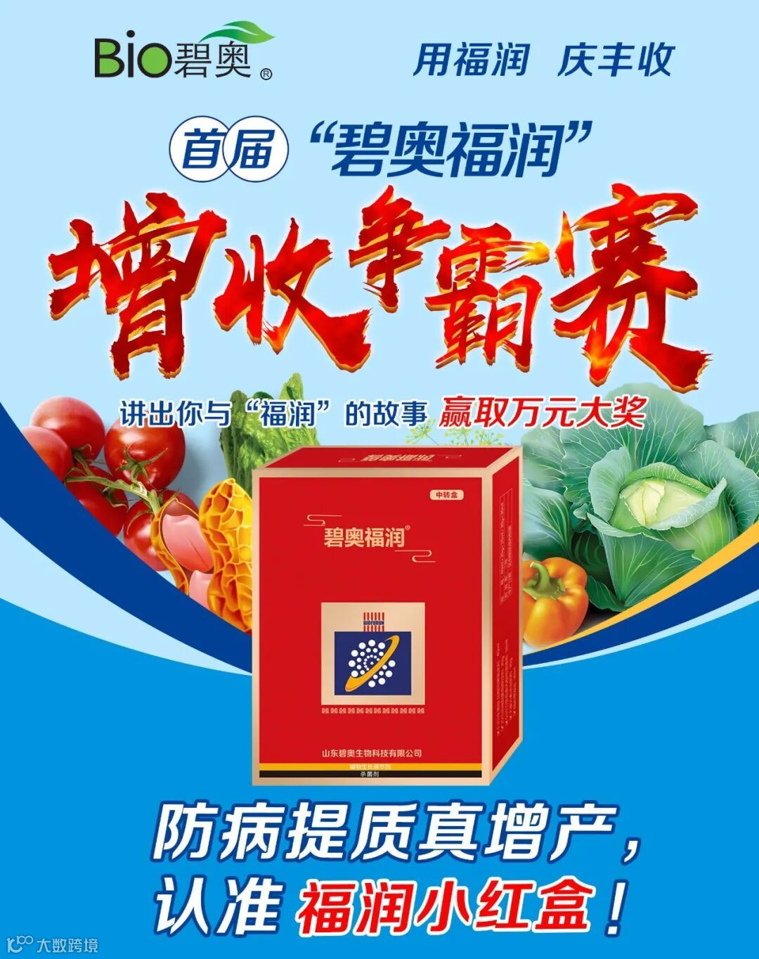 3、故事讲述:要求讲述人以视频形式上传,总时长在90秒以内,讲述者要在使用作物田间,手拿“碧奥福润”丰收套餐,清晰讲述自己使用“碧奥福润”的时间、地点、作物、用量,使用前后作物长势变化情况,以及对“碧奥福润”的中肯评价;