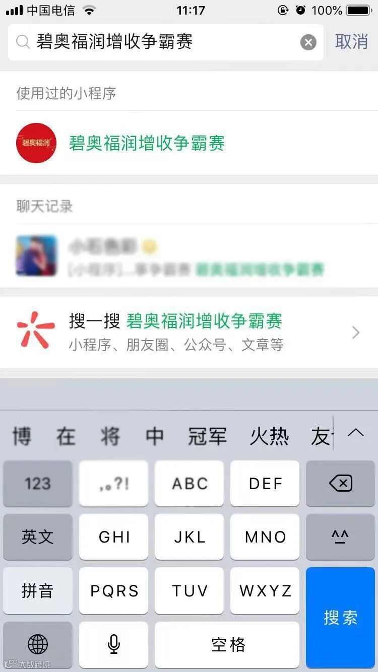方式三:点击微信最上方搜索:“碧奥福润增收争霸赛”,点击即可。